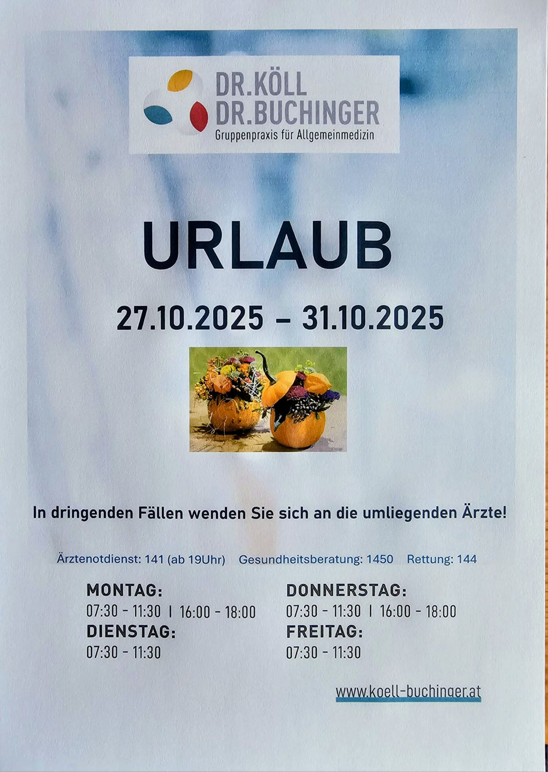 Bitte beachten Sie, dass Mittwoch unser ordinationsfreier Tag ist.